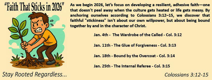 As we begin 2026, let's focus on developing a resilient, adhesive faith—one that doesn't peel away when the culture gets heated or life gets messy. By anchoring ourselves according to Colossians 3:12–15, we discover that faithful "stickiness" isn't about our own willpower, but about being bound together by and in the character of Christ.
