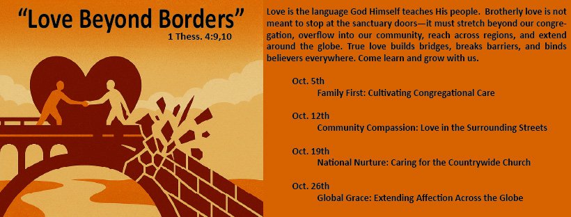 Love is the language God Himself teaches His people. Brotherly love is not meant to stop at the sanctuary doors—it must stretch beyond our congregation, overflow into our community, reach across regions, and extend around the globe. True love builds bridges, breaks barriers, and binds believers everywhere.